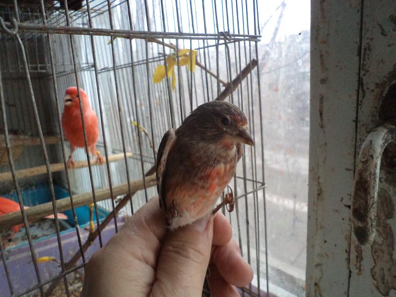 Привет Эдик,симпатичный экземпляр. А с огненным чижом он весь кирпичного цвета,только голова темно-коричневого. Размер чуть больше чем огненный чиж.
