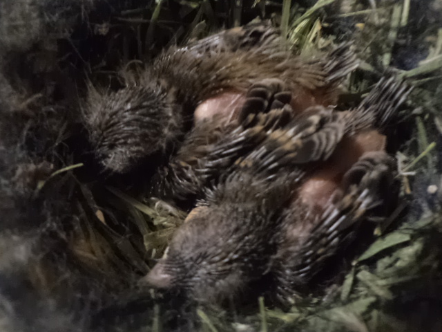 Ждём теперь когда чижиха сядет на яйца, пока только 3 шт в гнезде.