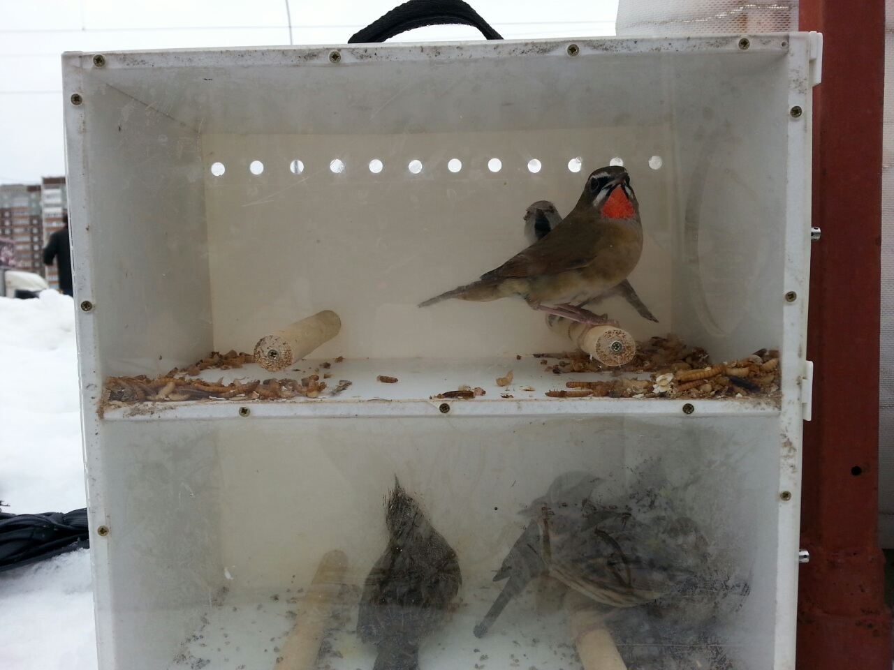 Неплохой выбор птиц на рыночке. Люди выбираются, интересуются, что - то покупают. Да тут можно собрать хорошую коллекцию! Спасибо за снимки, с удовольствием разглядывал птичек. Очень люблю овсянок ремезов.