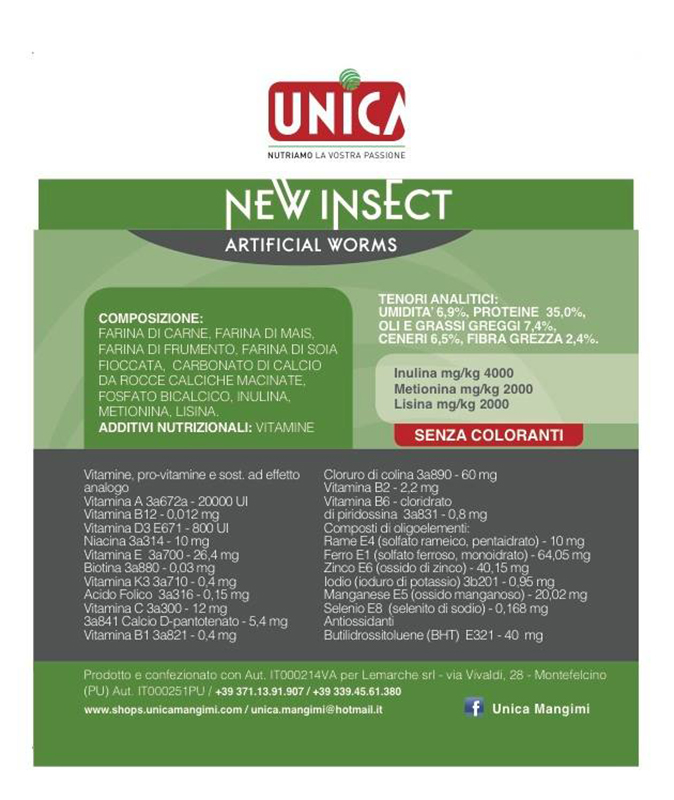 UNICA NEW-INSECT, an artificial form of insect that is nutritionally more balanced and bacteriologically pure and clean.