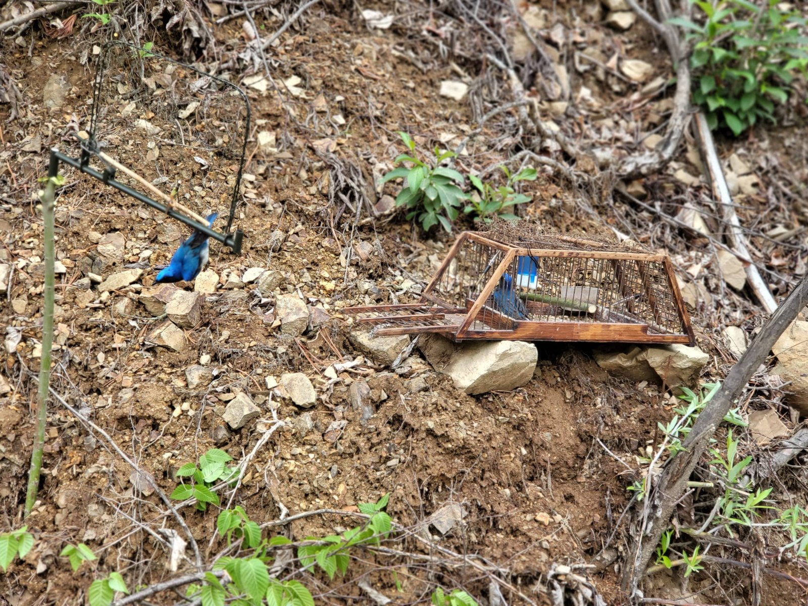 Пойманных птиц сажали в разборные икеевские боксы со вставной передней решеткой, на которую навешивались кормушка и поилка.