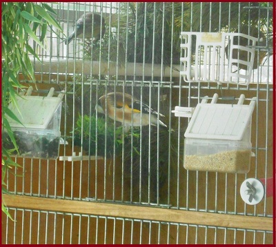 щегол поедает молодую зелень, корни и чернозём