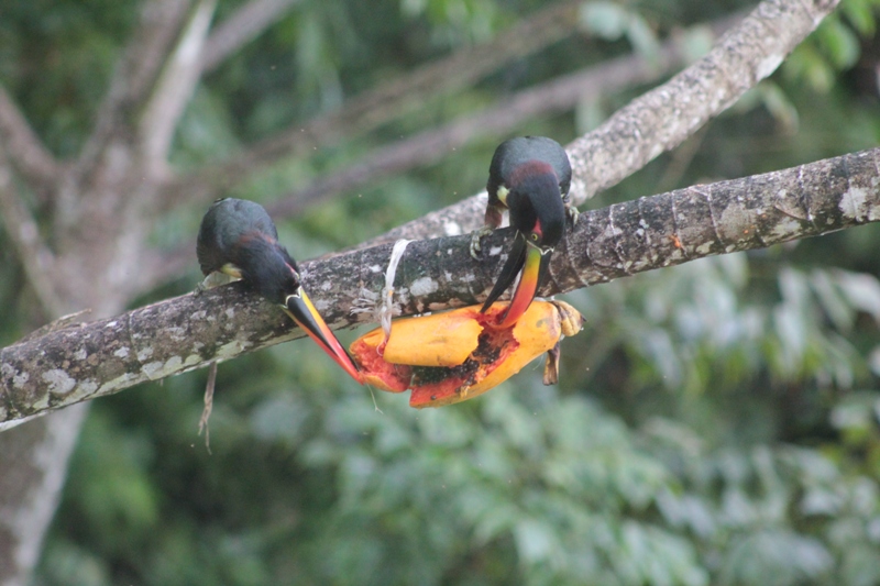 Да, сильно в джунгли я не захожу, как то самому не очень комфортно это делать, если верить интернету, тут проживает десятка самых ядовитых змей на планете. Нужно просто учитывать, по сути это страна одна большая деревня и очень многие предпочитают строить свои дома у леса, когда участок упирается в джунгли или если это большой участок, часть его и есть джунгли со всей фауной и флорой. Птичья жизнь кипит везде, сейчас живу на окраине небольшого городка и гуляя часто вижу туканов, неторопливо перелетающих с одного на другое кормовое дерево,три вида танагр постоянно вижу возле дома, два из них регулярно посещают мою кормушку на веранде, вокруг полно мелких зерноядных размером с японскую аммадину, местные крапивники утром будят лучше будильника.