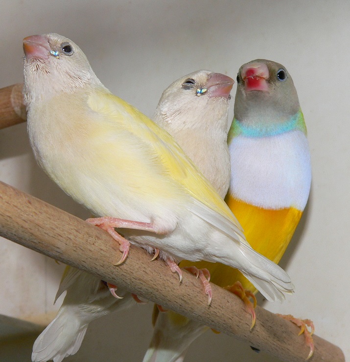 Виды птиц: тростиковые астрильды, обыкновенные чижи (мутационные)