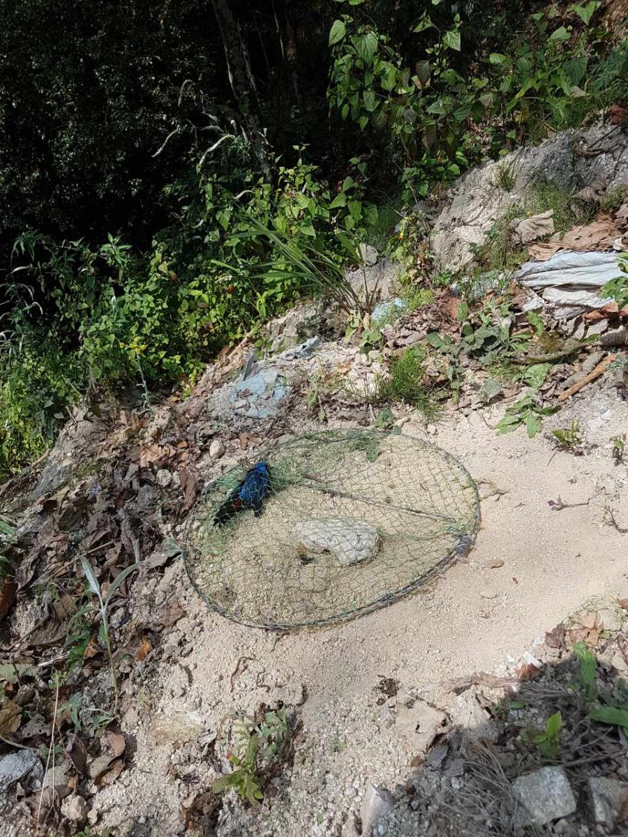 Теперь о снастях. Участок был сложный, пересеченный, имел несколько открытых мест, а так же и заросший кустарниками. В непосредственной близости преобладали еще синие каменные дрозды, и рядом чуть ниже был участок небесно-голубой мухоловки. Ловили горными лучками, изготовленными нашим форумчанином из Волгограда (ник Капитан)специально для птиц такого плана . Они с двумя мягкими, но довольно мощными пружинами,сторожок же при своей чуткости устойчив к внешним воздействиям типа сильного ветра, а также спокойно выдерживает вращения на нём одного-двух фобасов. Сами лучки диаметром 40 см с двойным дном, это дает возможность лучки вообще не прикалывать. Оставляя его на обрыве или у края скалы в качестве фиксации используется камень, который устанавливается непосредственно в лучке перед сторожком и является одновременно и присадой, и своеобразным якорем, не дающим лучку с такой сильной птицей упасть вниз. Эта технология была испытана нами еще в Приморье на синих каменных дроздах.В качестве наживки использовали фобаса и мучника, но птицы все-таки среагировали на мелкого фобаса. Кроме этого участок разрубили двумя паутинами, но они не сработали.