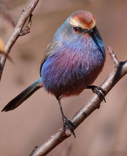 У самца расписной синички в брачном наряде верх головы рыже-каштанового цвета с фиолетовым оттенком. Лоб и брови светлые, охристо-белые. Бока головы и шеи буровато-серые с фиолетовым оттенком. Спина буровато-серая, поясница и надхвостье яркие - фиолетово-синие. Горло, грудь, бока и подхвостье красновато-бурые с сильным фиолетовым блеском. Брюшко светло-охристое. Маховые и верхние кроющие крыла темно-бурые, с узкими серовато-синими каймами наружных опахал первостепенных маховых и рыжеватыми каймами на крайних второстепенных. Рулевые буровато-черные с голубовато-фиолетовыми окаймлениями перьев, исключая две пары крайних, которые несколько светлее остальных и имеют грязно-белые наружные опахала. Радужина красная, клюв и когти черные, ноги черно-бурые. Самка окрашена более тускло. Верх головы рыжеватый, лоб и брови лишь слегка светлее окружающего оперения. На пояснице и надхвостье фиолетово-синий цвет развит слабее, спина с более сильным буроватым оттенком. Низ грязного охристо-серого цвета, лишь на боках сохраняются фиолетово-рыжеватые тона, подхвостье рыжеватое. Голубоватые окаймления на рулевых и маховых отсутствуют. В свежем осеннем пере у самца верхняя сторона тела с песочным оттенком, нижняя сторона лиловая. Самки осенью слегка тусклее, чем весной. Молодые окрашены, как и взрослые, но все цвета у них тусклее. Половой диморфизм в окраске молодых так же хорошо выражен. Размеры: крыло 48-53 мм. Вес: 6.3 - 8.3 г.