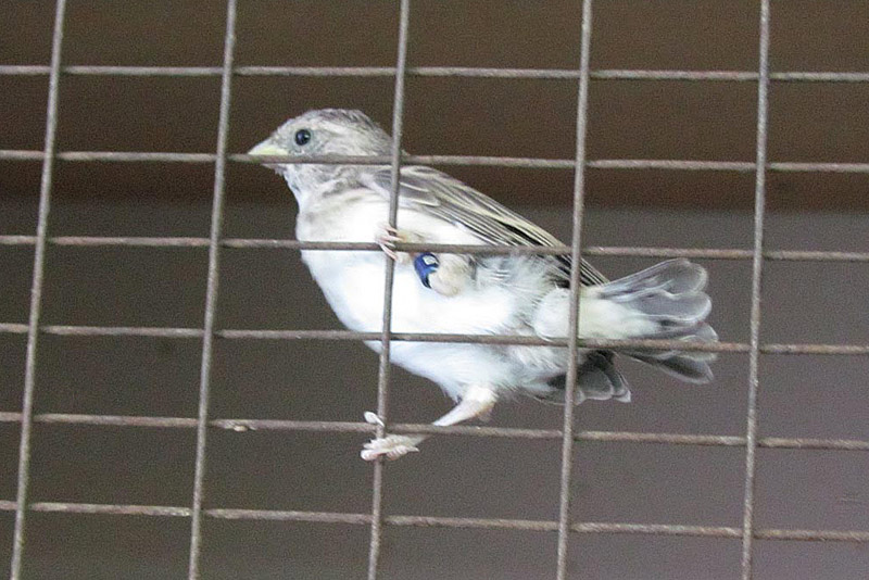 Кормят серых канареечных вьюрков моченым и слегка проращенным просом и канареечным семенем, семенами салата, березы, мака, сурепки, одуванчика и других сорных трав, зеленью и животным кормом - куколками мелких муравьев, тлями, мотылем, резаными личинками мучного хруща. Все лето нужно ставить в клетку букеты из самых разнообразных трав с полузрелыми семенами.